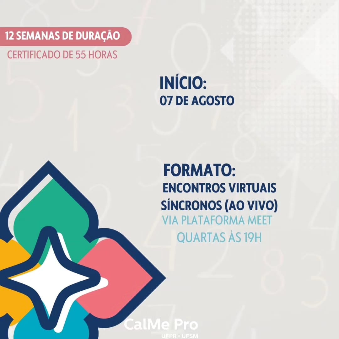 No segundo semestre de 2024 teremos uma turma do curso CalMe Pro iniciando em 07/08/2024